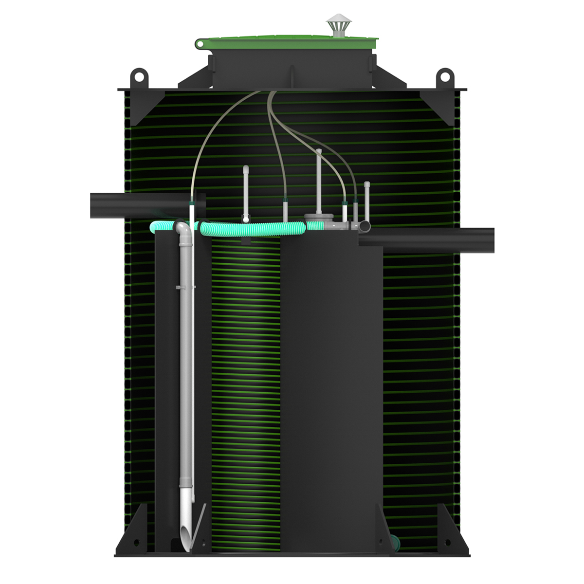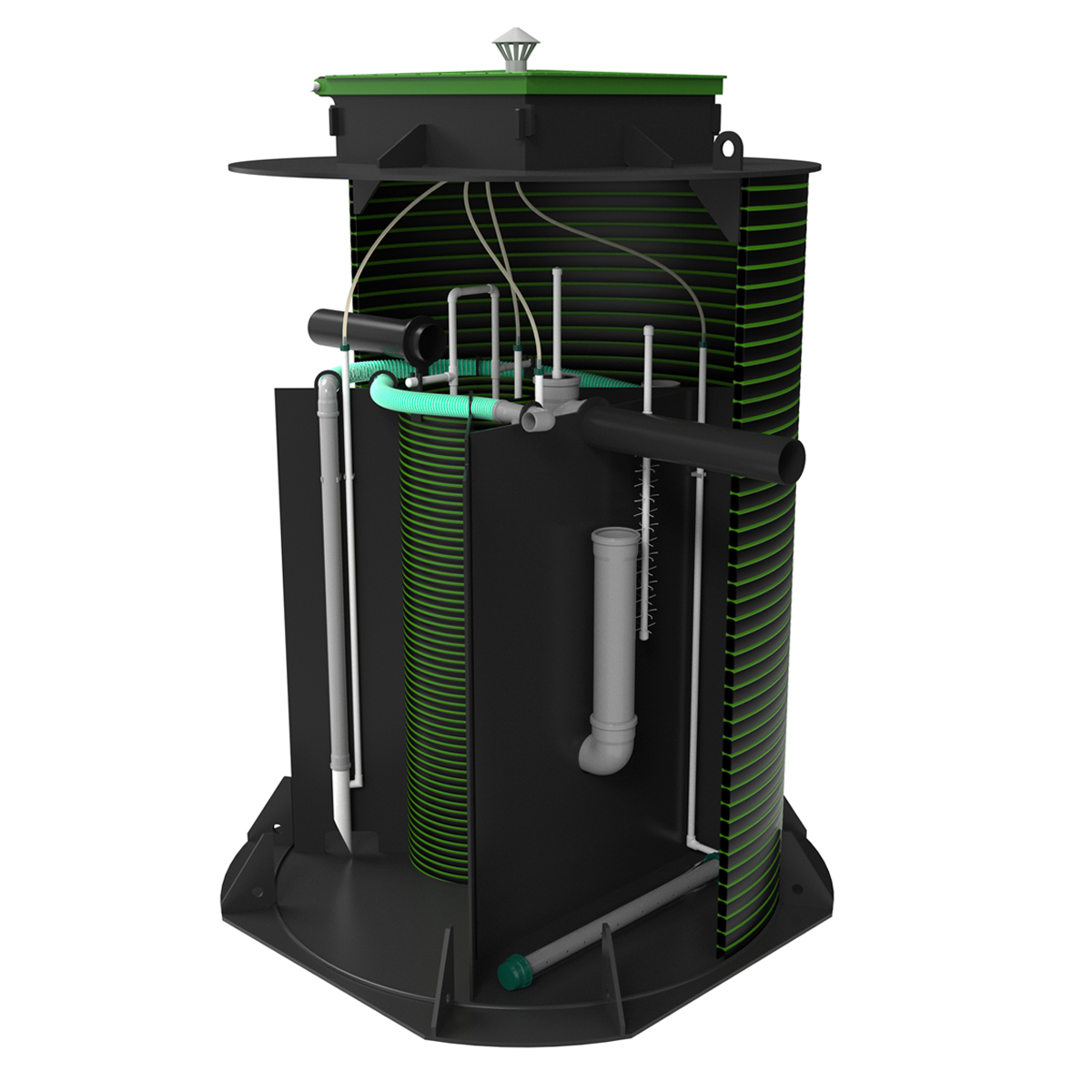 Вертикальная станция биологической очистки KANN серии Pro имеет производительность от 1200 до 3000 л/сутки и рассчитана на количество проживающих от 5 до 15 человек. Принцип работы септика основан не мелко-пузырчатой аэрации, которую создает аэрационная установка, поставляемая в комплекте. За счет подачи воздуха в станцию, а также дополнительных механизмов очистки происходит полная очистка стоков до уровня 98%. Полученная на выходе вода не имеет запаха, прозрачна и бесцветна. Такую воду можно дренировать в грунт.