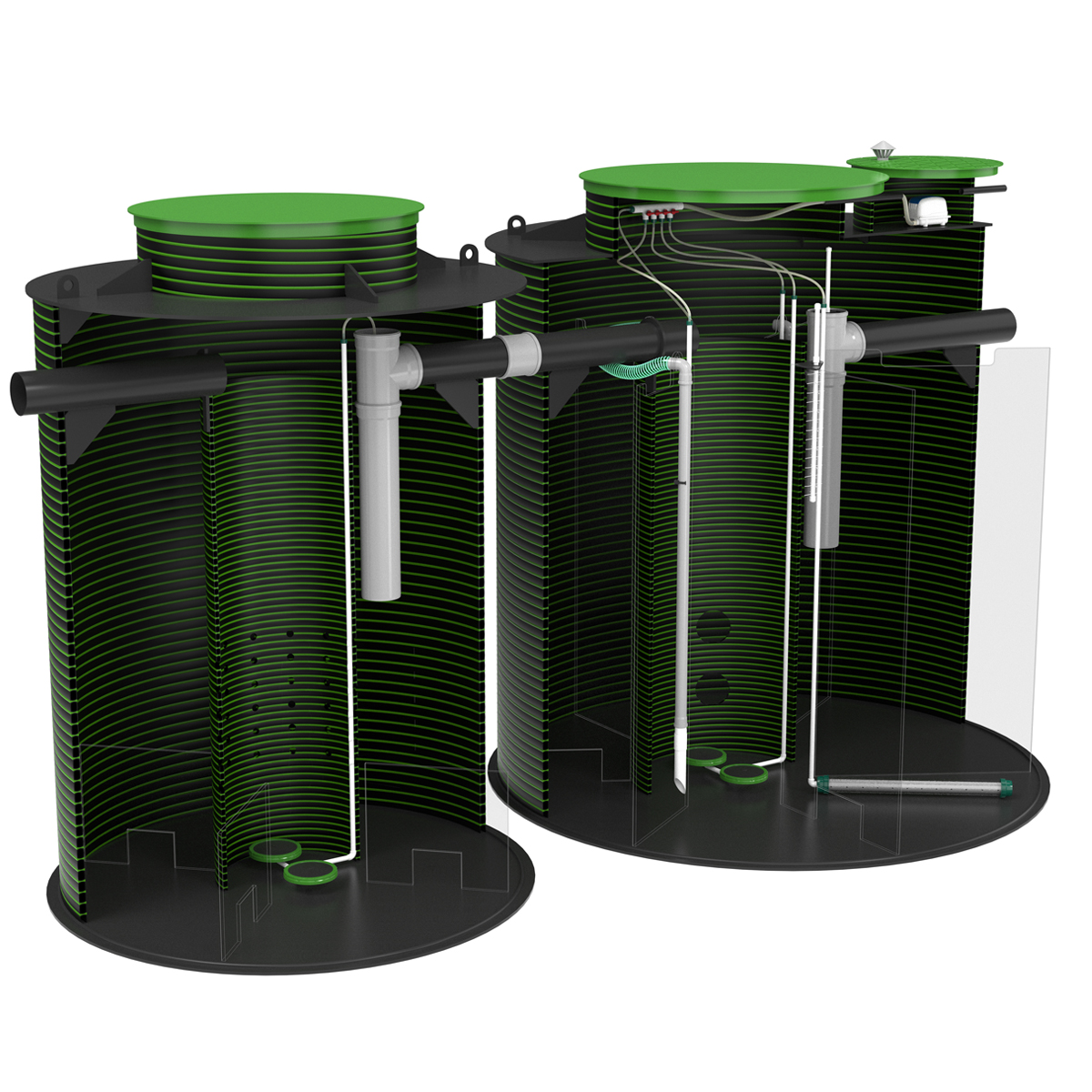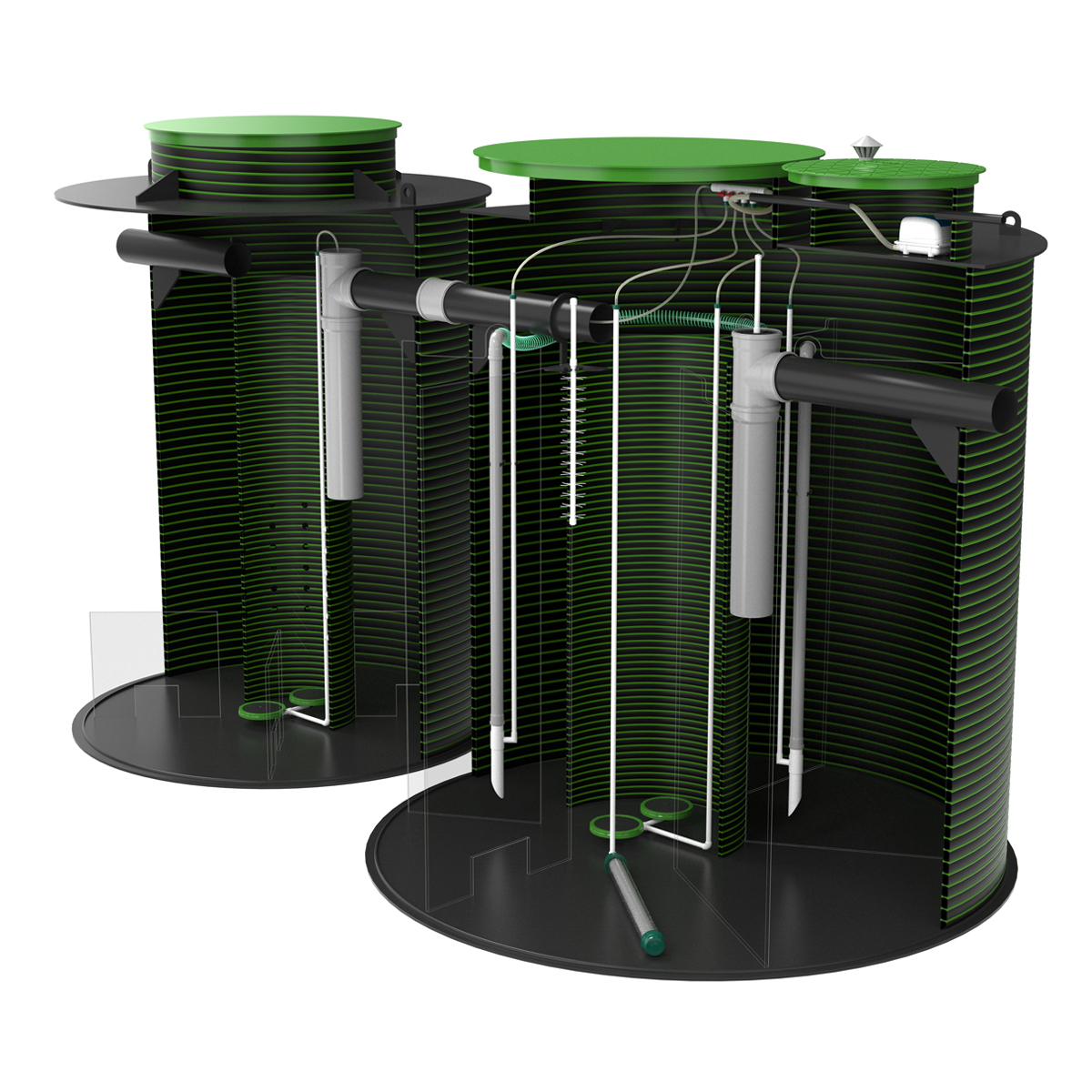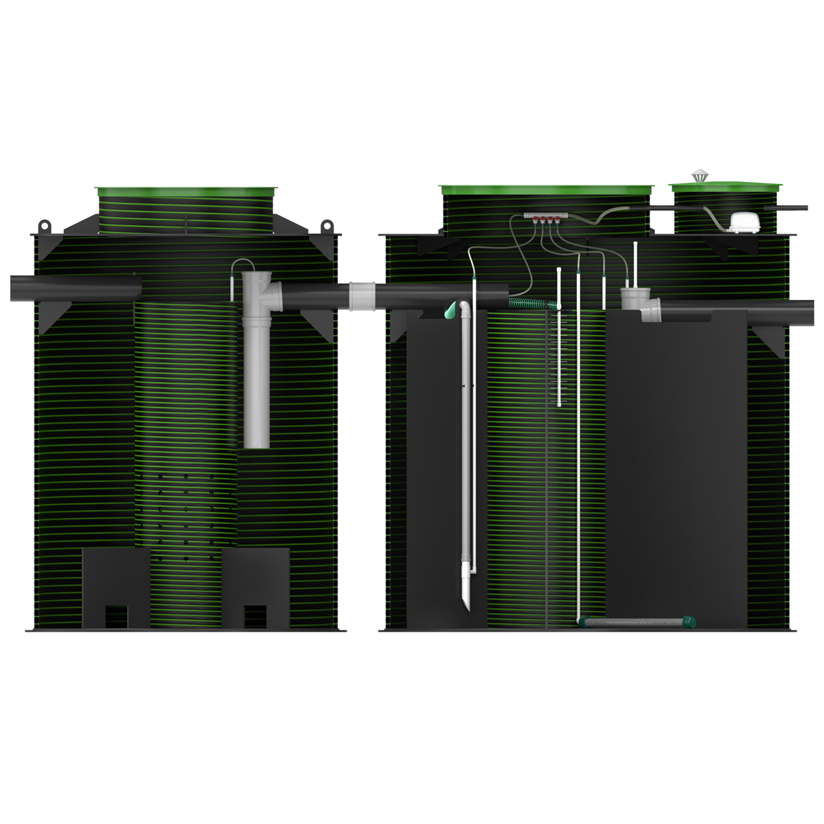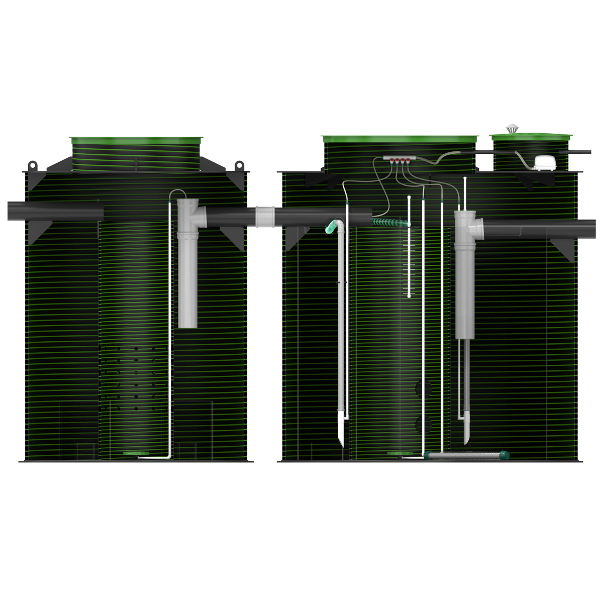 Вертикальные станции биологической очистки KANN серии ULTRA PRO имеют производительность от 5000 до 25000 л/сутки и рассчитаны на количество проживающих от 20 до 100 человек. Принцип работы септика основан не мелко-пузырчатой аэрации, которую создает аэрационная установка, поставляемая в комплекте. За счет подачи воздуха в станцию, а также дополнительных механизмов очистки происходит полная очистка стоков до уровня 98%. Полученная на выходе вода на выходе не имеет запаха, прозрачна и бесцветна. Такую воду можно дренировать в грунт.